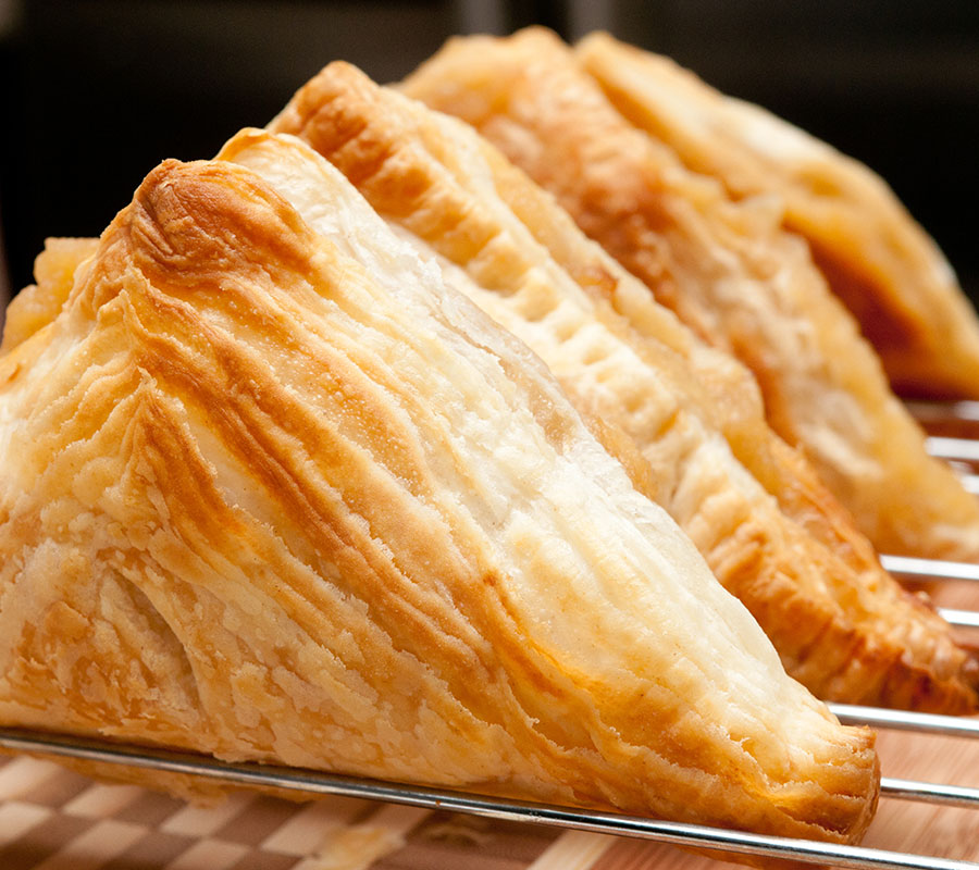 Una vez tengamos a masa, estirarla dejándola algo fina y cortar en tiras de unos 10cm aproximadamente, cortar las tiras en cuadrados, colocar en el medio de estos un poco de relleno, humedecer los bordes con agua y tapar con otro cuadrado de masa, apretar con cuidado los bordes dándole forma al pastel. Poner en una olla aceite lo suficiente como para que el pastel quede sumergido, ponerlo a fuego hasta que el aceite quede tibio, una vez alcanzada esta temperatura poner los pasteles, bañarlos con una cuchara y siempre a a fuego lento hasta que la masa quede abierta en varias hojas; entonces se le da fuego fuerte y cuando estén dorados por la parte de abajo se dan vuelta dejándolos dorar por el otro lado, retiran del aceite escurriéndolos y se espolvorean con azúcar.